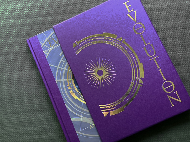 Offered singly for the first time, this is a stunning Handmade Slipcase covered in Buckram and embellished with a striking bold design and title in Gold Foil. A beautiful artefact in its own right, your EVOLUTION book will slip effortlessly into it, protecting and enhancing.
